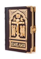 Библия "Распятие Христово" в позолоте - это уникальное издание священной христианской реликвии в безупречно выполненной обложке из обработанной вручную кожи телёнка с массивным окладом из золочёного серебра высшей пробы, инкрустированным девятью камнями циркония. Традиционные книги Писания и Заветов дополнены указателями и географическими картами. Тонкий, почти кружевной, узор оклада обрамляет каноническое изображение распятия Христа вкупе с фигурами святых и Божьей Матери по бокам. В отдельную рамку выделено слово "Библия", выполненное стилизованным под древнерусский шрифтом. Текст отпечатан на рисовой бумаге с золотым обрезом, прекрасно гармонирующем с позолотой оклада. Для лучшей сохранности страниц в обложку вставлен замок. Книга дополнена закладкой. Каждый экземпляр Библии "Распятие Христово" изготавливается отдельно, поэтому книга доступна только по предварительному заказу. Упакованную в подарочный футляр и транспортировочную коробку, её удобно преподнести значимому для вас верующему человеку в дар. Также данное издание способно стать бережно хранимой и передаваемой из поколения в поколение семейной реликвией.