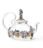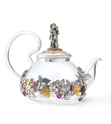 Чайник из серебра "Земляника". Высота: 18,6 см. Ширина: 13,5 см. Артикул: CIS0003