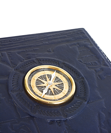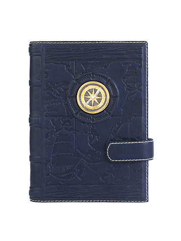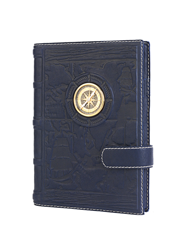 Большой ежедневник формата А5 представительского класса «Яхтсмен» выполнен вручную из телячьей кожи и украшен серебряной плакеткой высокой степени проработки. Съемный блок напечатан на качественной мелованной бумаге и украшен трехсторонним золотым обрезом. Может комплектоваться серебряной ручкой, для которой в обложку вшита петля.