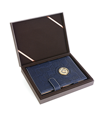 Клейма мастерской и пробирной палаты находятся на центральном элементе композиции ежедневника. Поставляется в подарочном футляре и транспортной коробке.