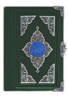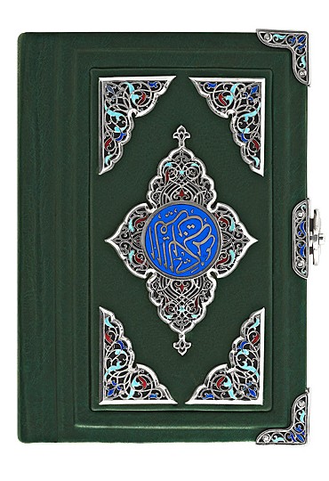 Коран "Подарочный" представляет собой священную книгу, изданную на арабском языке, в превосходном переплёте ручной работы. Страницы книги, имитирующие папирус, имеют трёхсторонний золочёный обрез. Печать выполнена шрифтом насх. Переплёт изготовлен и тонкой телячьей кожи, окрашенной в глубокий зелёный цвет. В изготовлении оклада использовано серебро 925 пробы, цирконий и цветная эмаль. Центральную часть оклада в розетке синего цвета занимает надпись вязью "Священный Коран". Все серебряные детали (кроме центральной розетки) выполнены в традиционной технике ислими. Данное издание Корана может стать семейной реликвией или великолепным подарком вашим друзьям, близким или деловым партнёрам, исповедующим ислам. Для удобства вручения подарка книга упакована в фирменный подарочный футляр. Коран "Подарочный" доступен только по предварительному заказу.