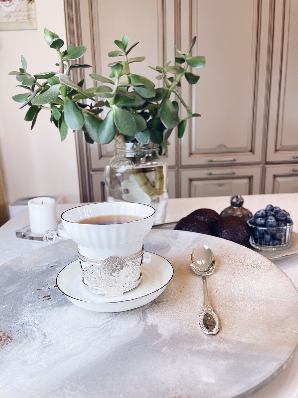 2 чайные чашки "Константин Великий" в комплекте с серебряными ложками способны задать особо торжественный тон встрече или домашнему застолью. Чашки с серебряными ободками и основаниями украшены изображениями профиля римского императора. Ложки из коллекции столового серебра "Император" идеально вписываются в комплект, форма их ручек перекликается с отделкой оснований чашек. Набор продаётся в удобном подарочном футляре.