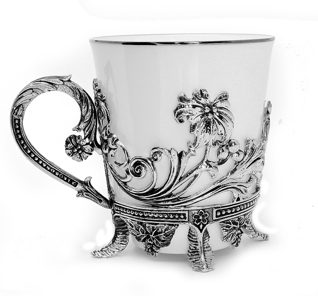 Чайные чашки из серебра "Цветочные" - 2 шт. Артикул: SCH0012