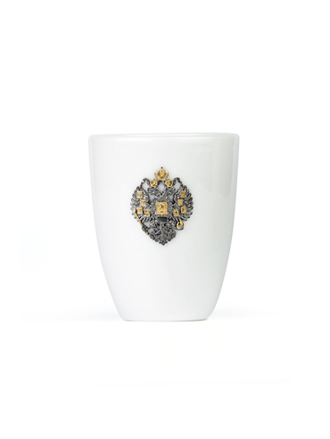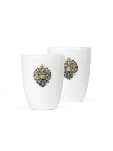 Чайные пиалы из фарфора превосходно сочетаются с серебряным украшением в виде герба царской России ручной работы.
