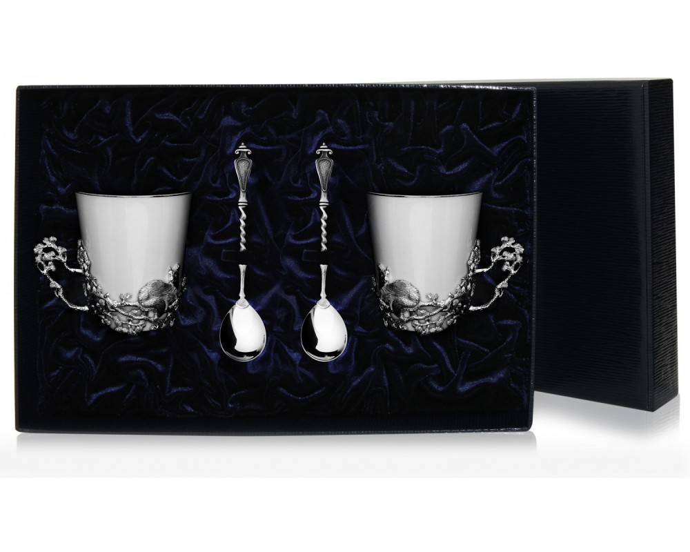 Чайные чашки с серебром "Куница" - 2 шт. Артикул: SCH0013