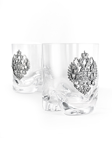 Стаканы "Империя" для виски ёмкостью 280 мл изготовлены на заводе "Богемия" в Чехии. Изготовленные из стекла, стаканы декорированы серебряным гербом Российской Империи. Для Вашего удобства стеклянные предметы уложены в подарочный футляр и транспортировочную упаковку.