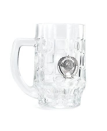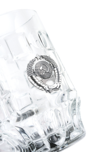 Подарочная кружка для кваса украшена серебряным гербом СССР ручной работы.