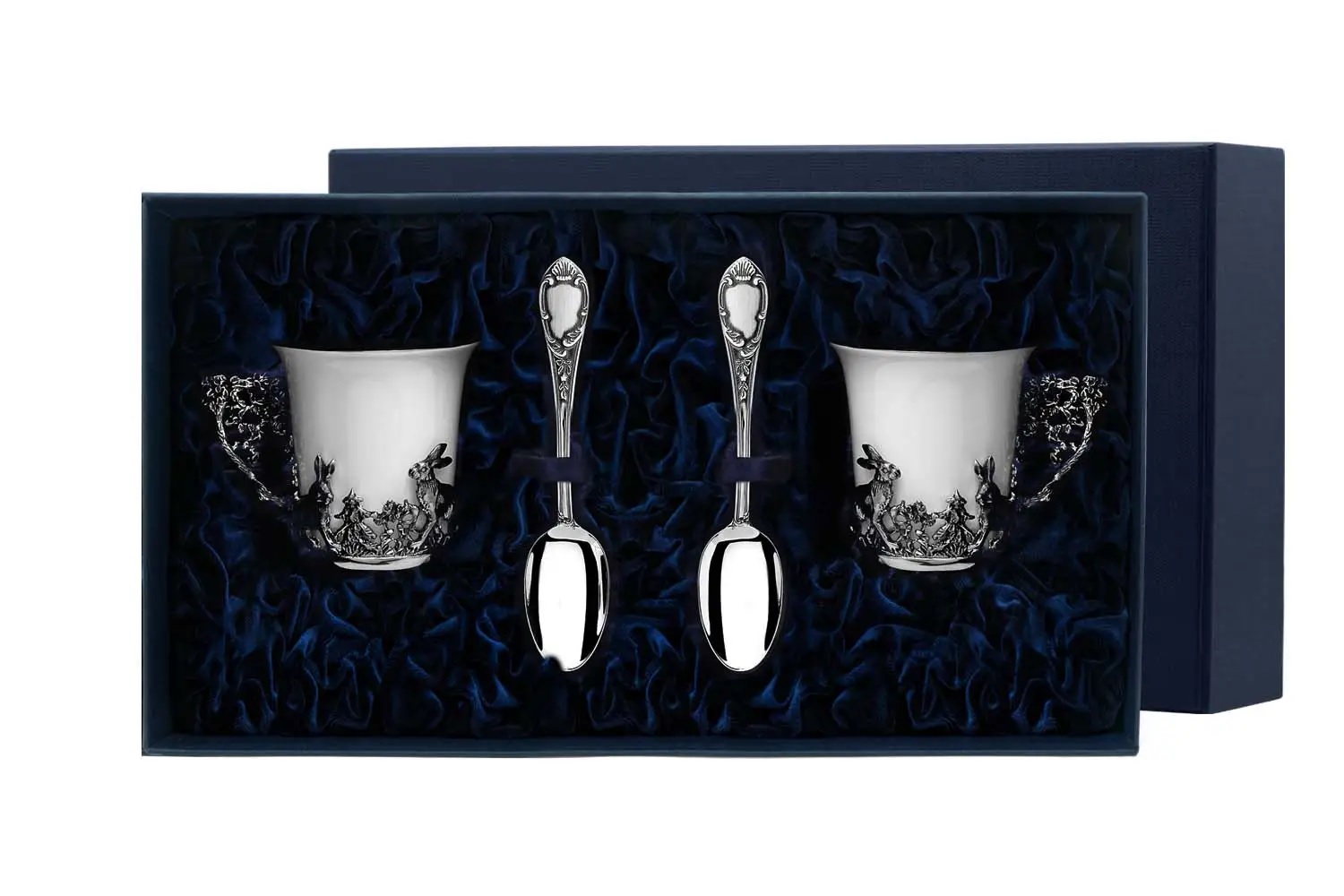 Кофейные чашки из серебра "Зайцы" - 2 шт. Высота - 5 см. Ширина - 5 см. Артикул: SCH0019