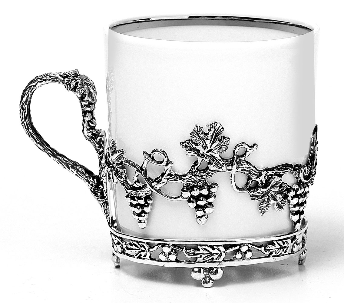 Кофейные чашки с серебром "Виноград" с ложками - 2 шт. Высота - 6 см. Ширина - 6 см. Артикул: SCH0022