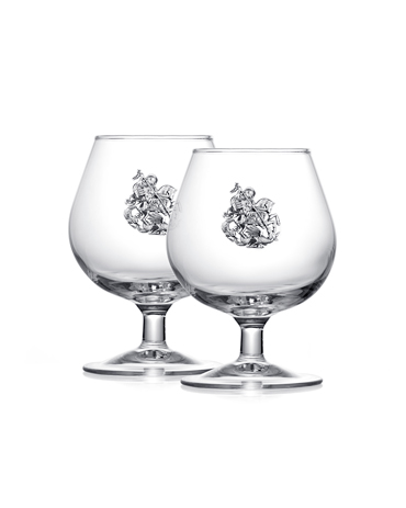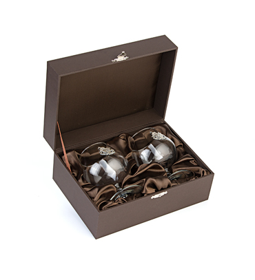 Коньячные фужеры с серебром "Георгий Победоносец" - 2 шт. Высота - 11.5 см., ширина - 7.1 см, объем - 250 мл. Артикул: BVS0018