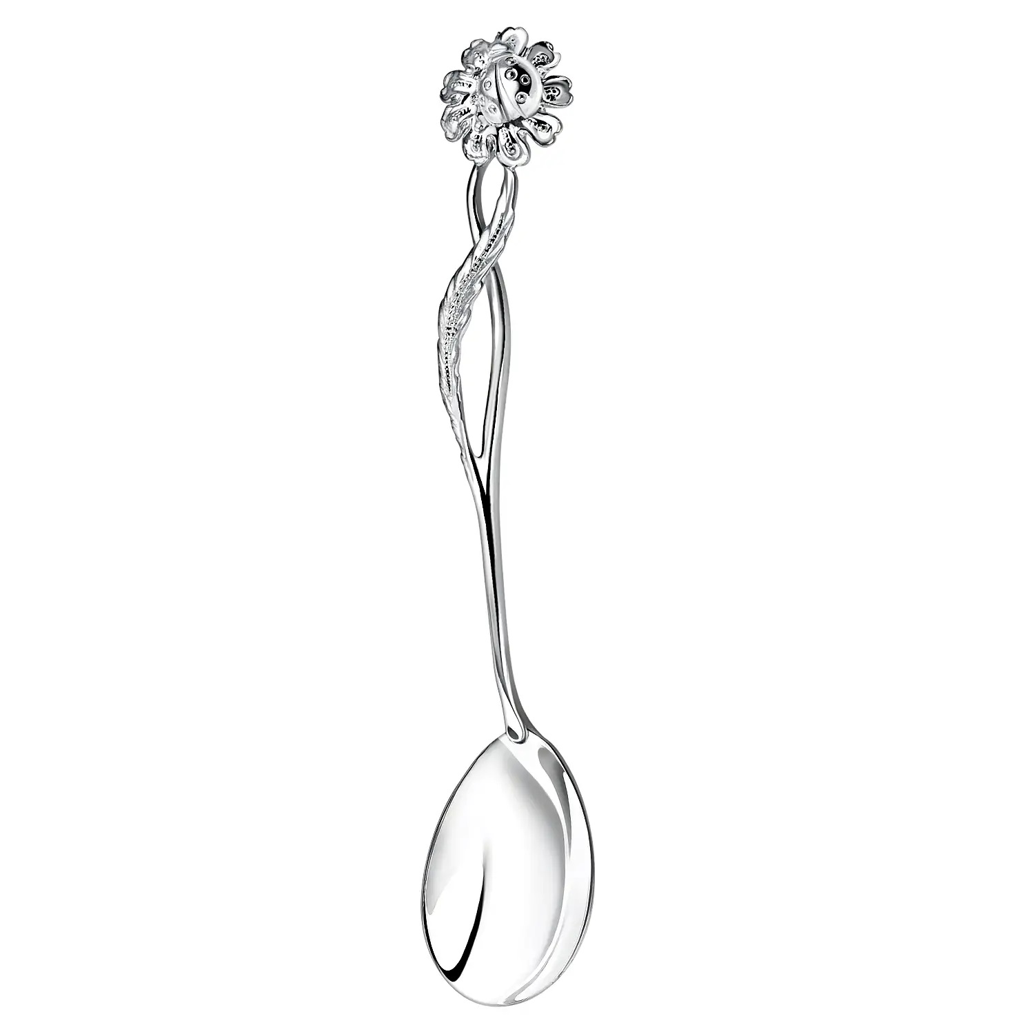 Серебряная чайная ложка "Ромашка". Длина - 13 см, ширина - 2.5 см. Артикул: