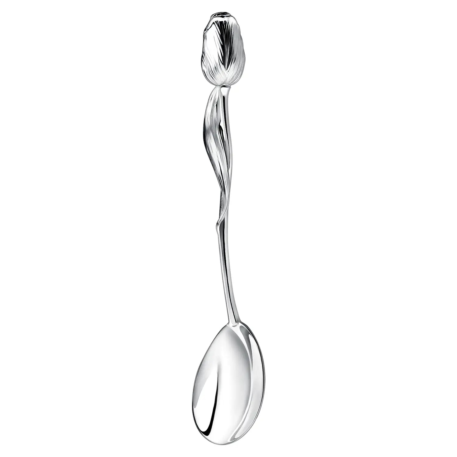 Серебряная чайная ложка "Тюльпан". Длина - 13 см, ширина - 2.5 см. Артикул: