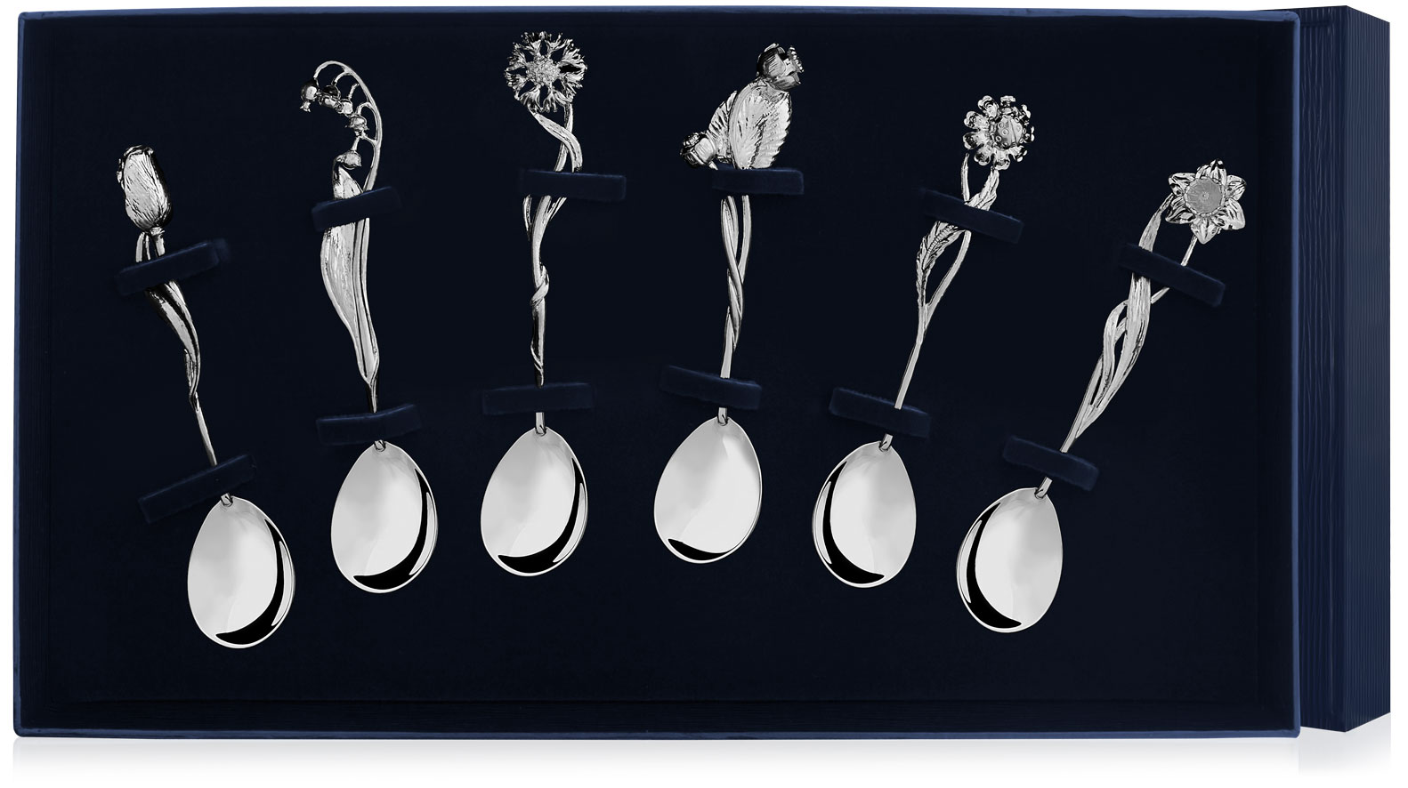 Серебряный набор «Цветы России» 6 чайных ложек