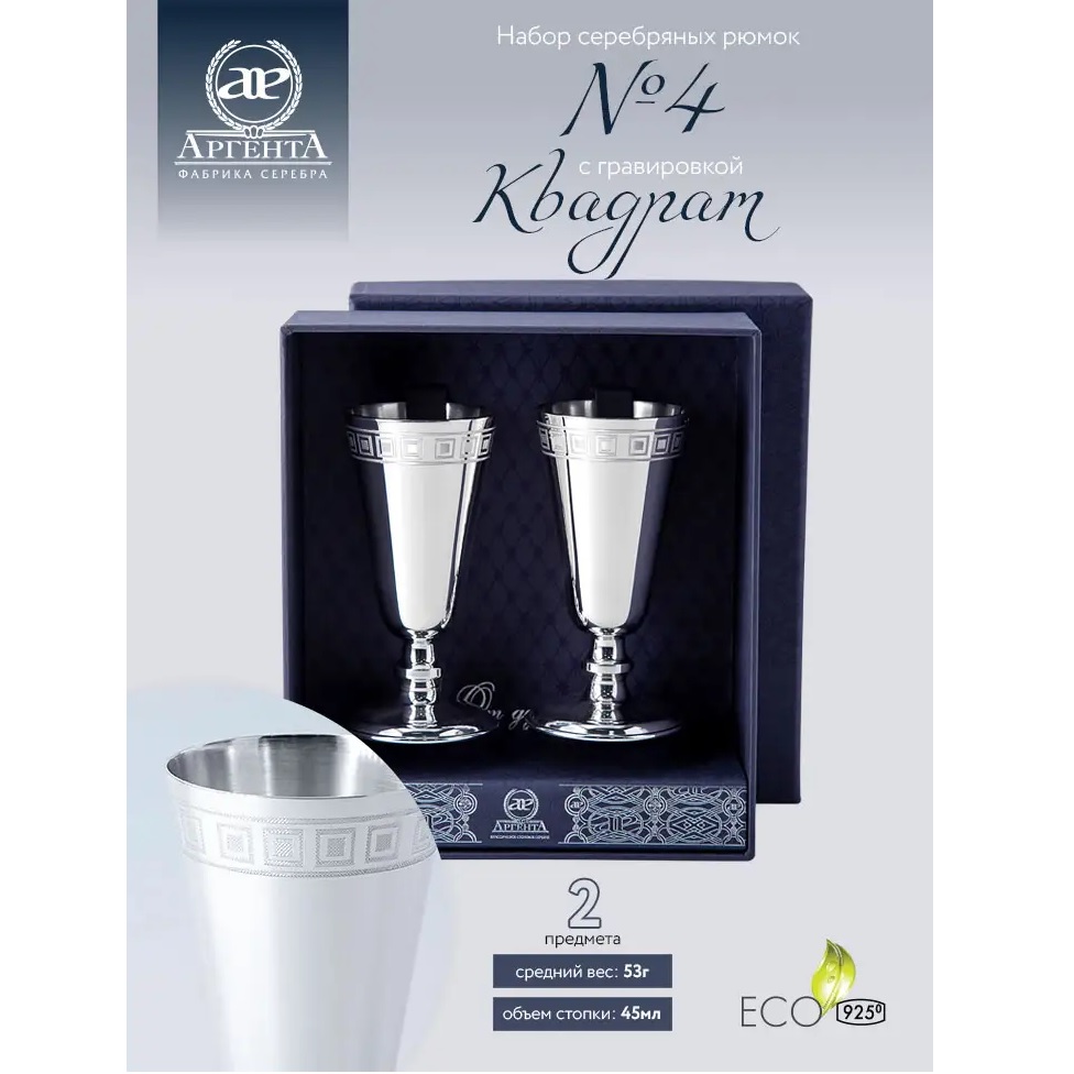 2 серебряные рюмки «№4» с гравировкой