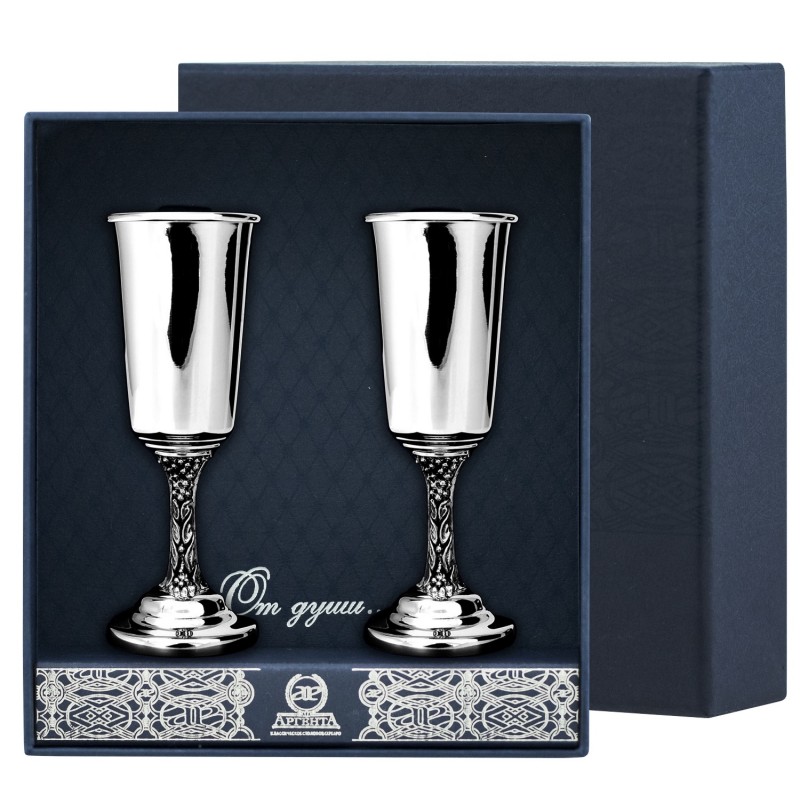 Рюмки из серебра "Виноград" с чернением - 2 шт. Высота: 9,5 см. Артикул: SRR0011