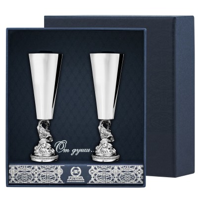 2 серебряные рюмки "Золотая рыбка" привлекают внимание ножками в виде сказочного персонажа. Конической формы рюмки ёмкостью 15 мл будут прекрасно смотреться сами по себе или рядом с любым кофейным сервизом из нашей коллекции. Для приобретения данных рюмок Вам необходимо предварительно оставить заказ у оператора.