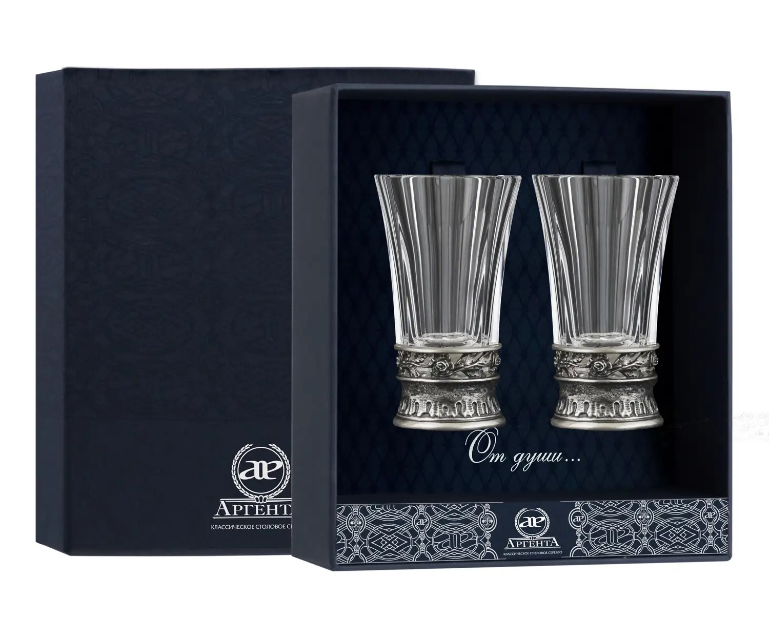Серебряные стопки "Подарочные" - 2 шт. Высота - 5,6 см. Ширина - 4 см. Артикул: STP0009