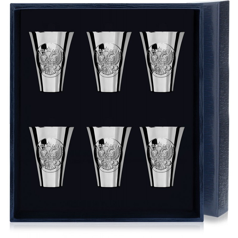 Стопки с серебром "Герб" - 6 шт. Высота - 5,6 см. Ширина - 4 см. Артикул: STP0026