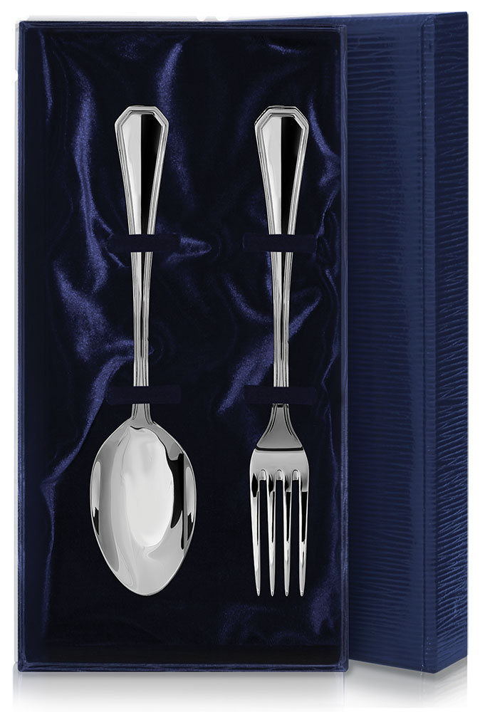 Серебряный набор "Престиж" - это столовая ложка и вилка, которые могут пополнить Вашу коллекцию серебра. Рукоятки столовых приборов украшены лаконичным узором, благодаря которому они приобретают элегантный и богатый вид. Набор изготовлен из серебра пробы 925 и упакован в синий однотонный футляр.