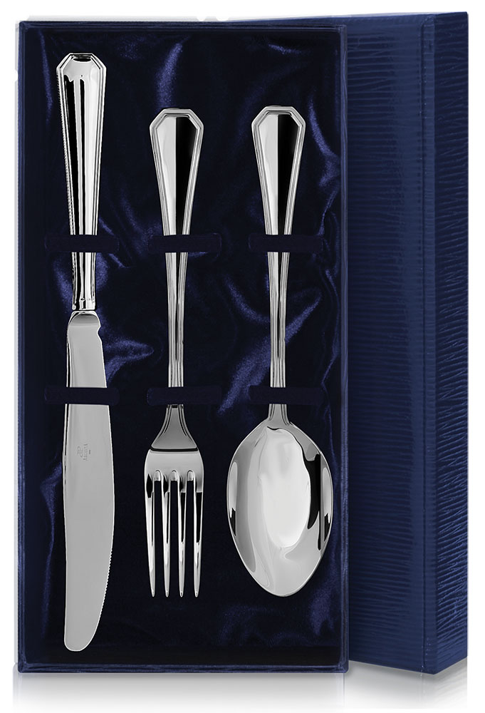 Серебряный набор столовый "Элегант" состоит из вилки, ножа и столовой ложки с узором по краям рукояток. 3 представленные предмета изготовлены из серебра 925 пробы. Набор создан высококлассными специалистами на заводе "АргентА", что является залогом высокого качества изделий. Тёмно-синий футляр является упаковкой товара и дополняет привлекательный вид