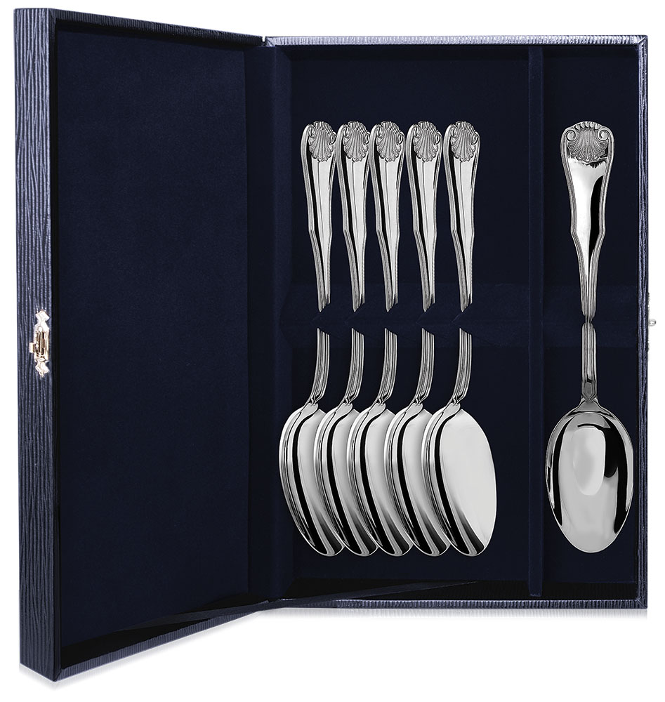 В серебряный набор "Визит" входит 6 столовых ложек. Великолепные, тонко выполненные узоры украшают всю поверхность рукояток предметов. Все ложки изготовлены из серебра 925 пробы. Станет роскошным подарком для ваших близких и друзей. Упаковка - синий футляр из плотного картона для бережного хранения.
