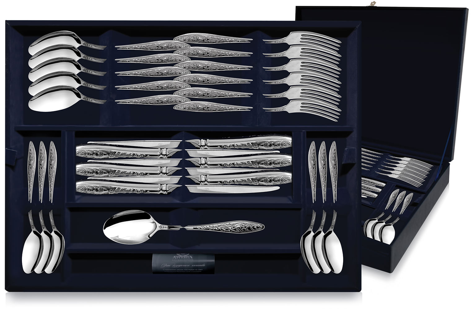 Серебро «Аргента» - неповторимая культура ювелирного дела, отраженная в изделиях высшей пробы. Уникальные коллекции столовых приборов украсят любой праздник.