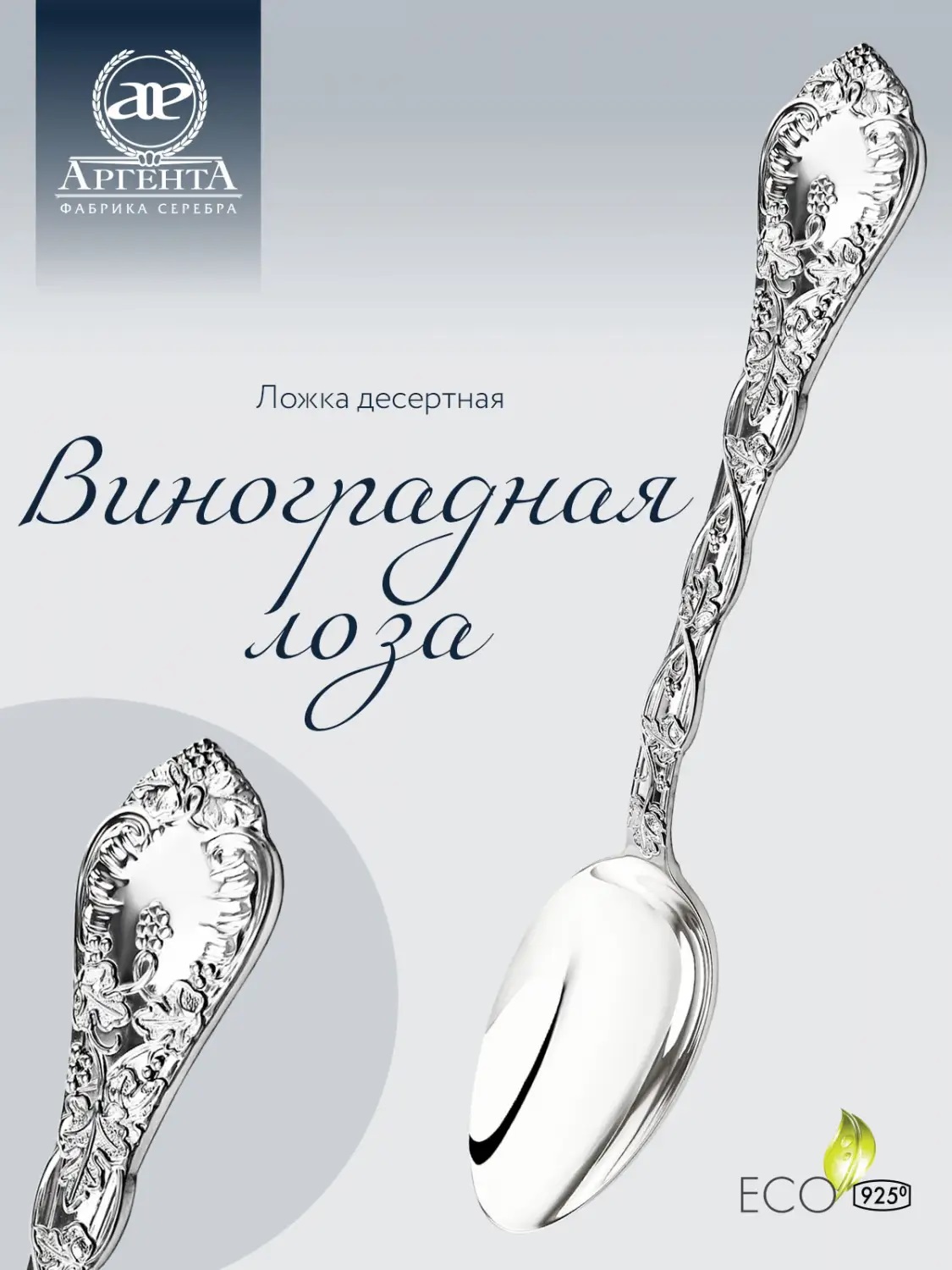 Серебряный набор десертный «Виноградная лоза» 6 ложек