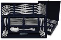 Роскошный серебряный набор столовый "Элегант" состоит из 24 изысканных столовых приборов, украшенных витыми узорами на рукоятках, что дополняет особым образом как торжественный, так и домашний стол. Все двадцать четыре предмета выполнены из серебра 925 пробы. Набор упакован в удобный футляр с гребёнкой-разделителем. Станет потрясающим подарком на торжество. Используя столовое серебро, вы насладитесь изысканным и утонченным видом приборов и позаботитесь о своем здоровье, благодаря природным антисептическим свойствам столового серебра.