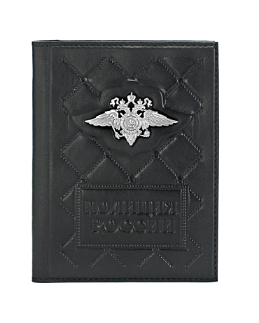 Обложка для автодокументов «Полиция России» выполнена вручную из телячьей кожи и украшена серебряным гербом.