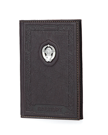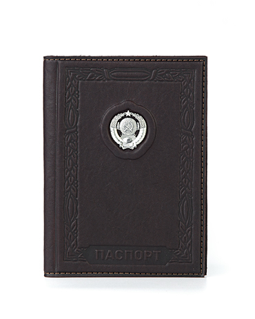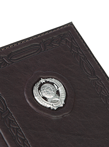 Обложка для паспорта представительского класса «СССР» выполнена вручную из телячьей кожи и украшена серебряным гербом высокой степени проработки.