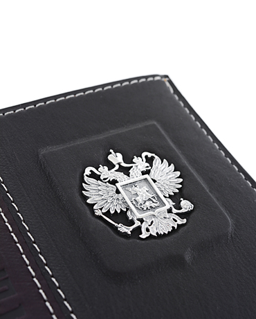 Обложка для документов представительского класса «Федерация» выполнена вручную из телячьей кожи и украшена серебряной плакеткой высокой степени проработки.