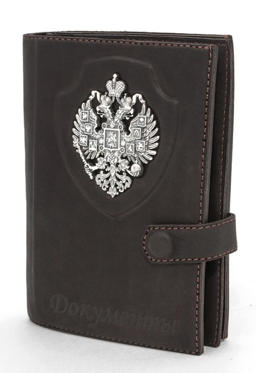 Обложка для документов представительского класса «Империя» выполнена вручную из телячьей кожи и украшена серебряной плакеткой высокой степени проработки.