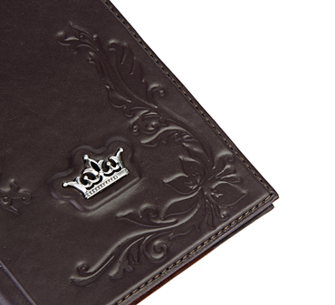 Обложка для паспорта «Королева» выполнена вручную из телячьей кожи и украшена серебряной плакеткой высокой степени проработки.