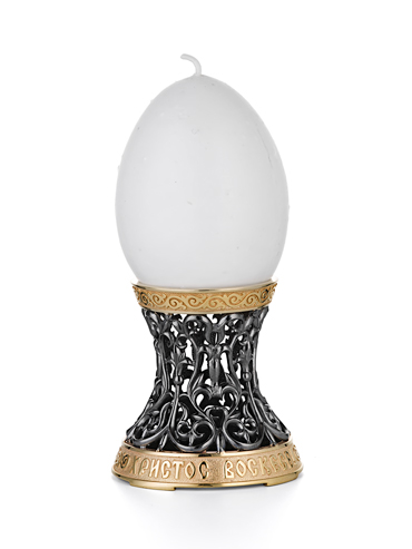 Празднично оформленная подставка под куриное или деревянное яйцо, а также свечу в форме яйца. Выполнена полностью вручную и упакована в фирменный подарочный футляр.
