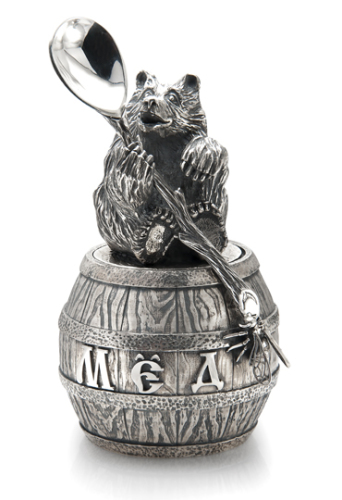 Серебряный бочонок для мёда "Медведь". Высота: 11 см. Ширина: 6 см. Артикул: SBM0001