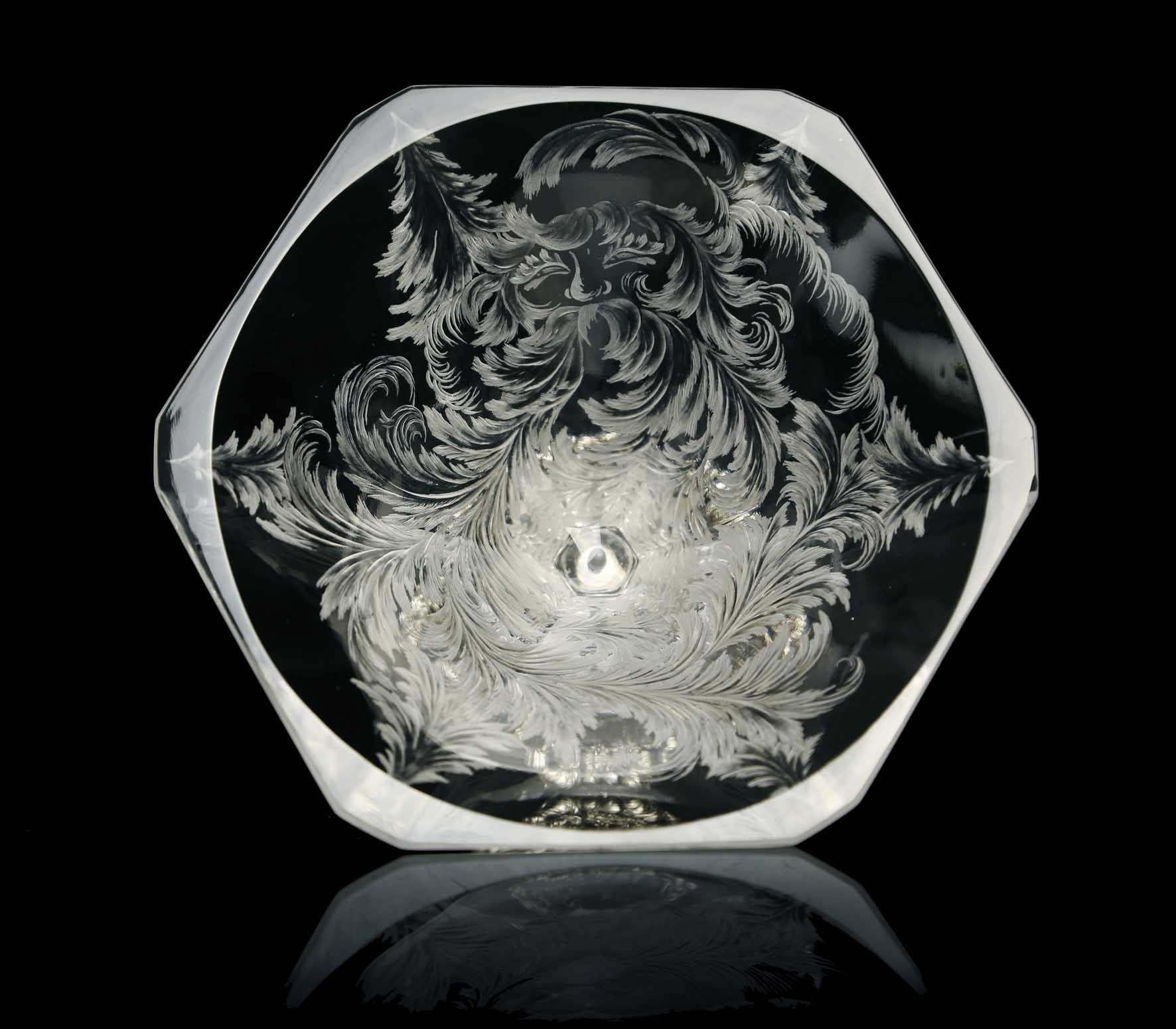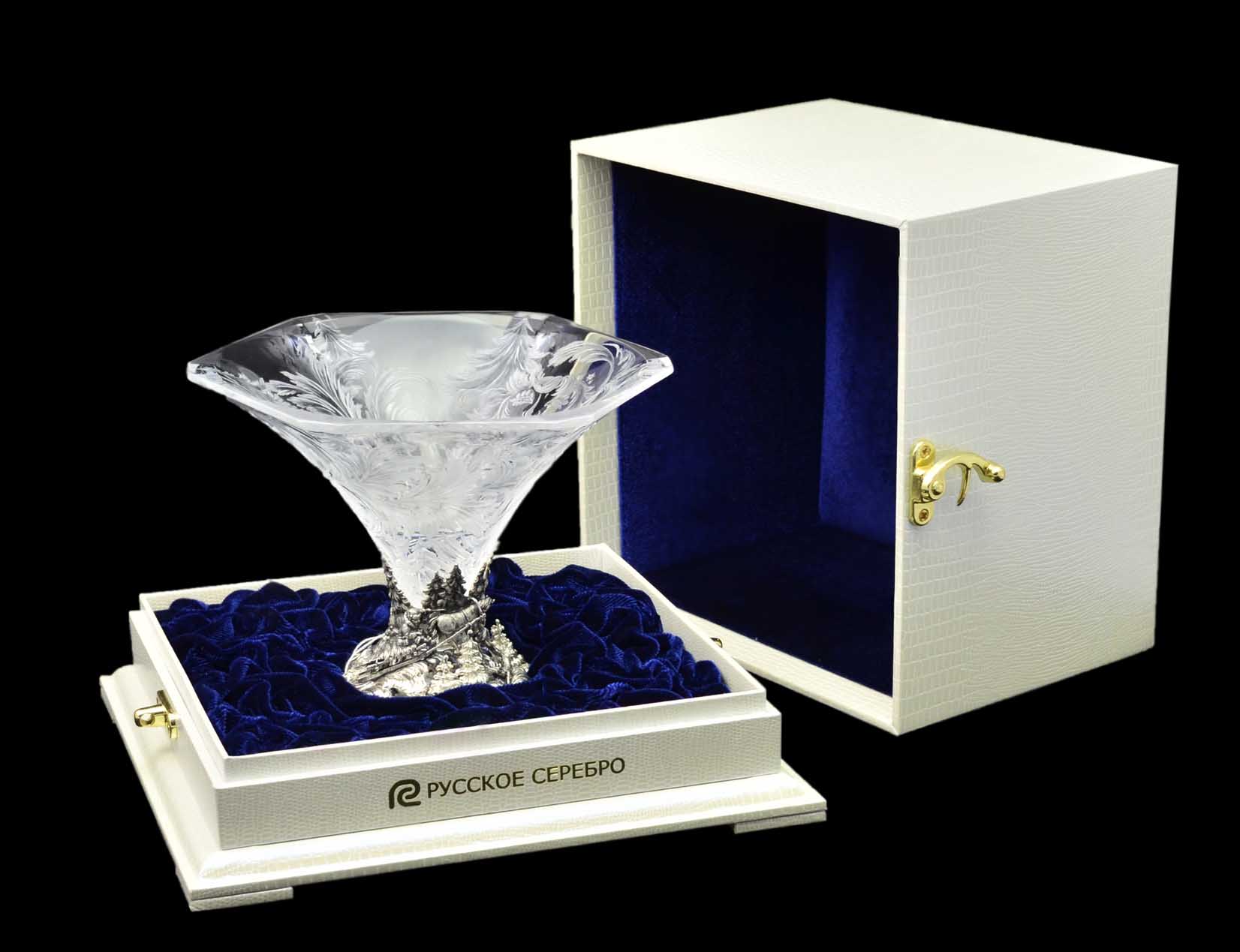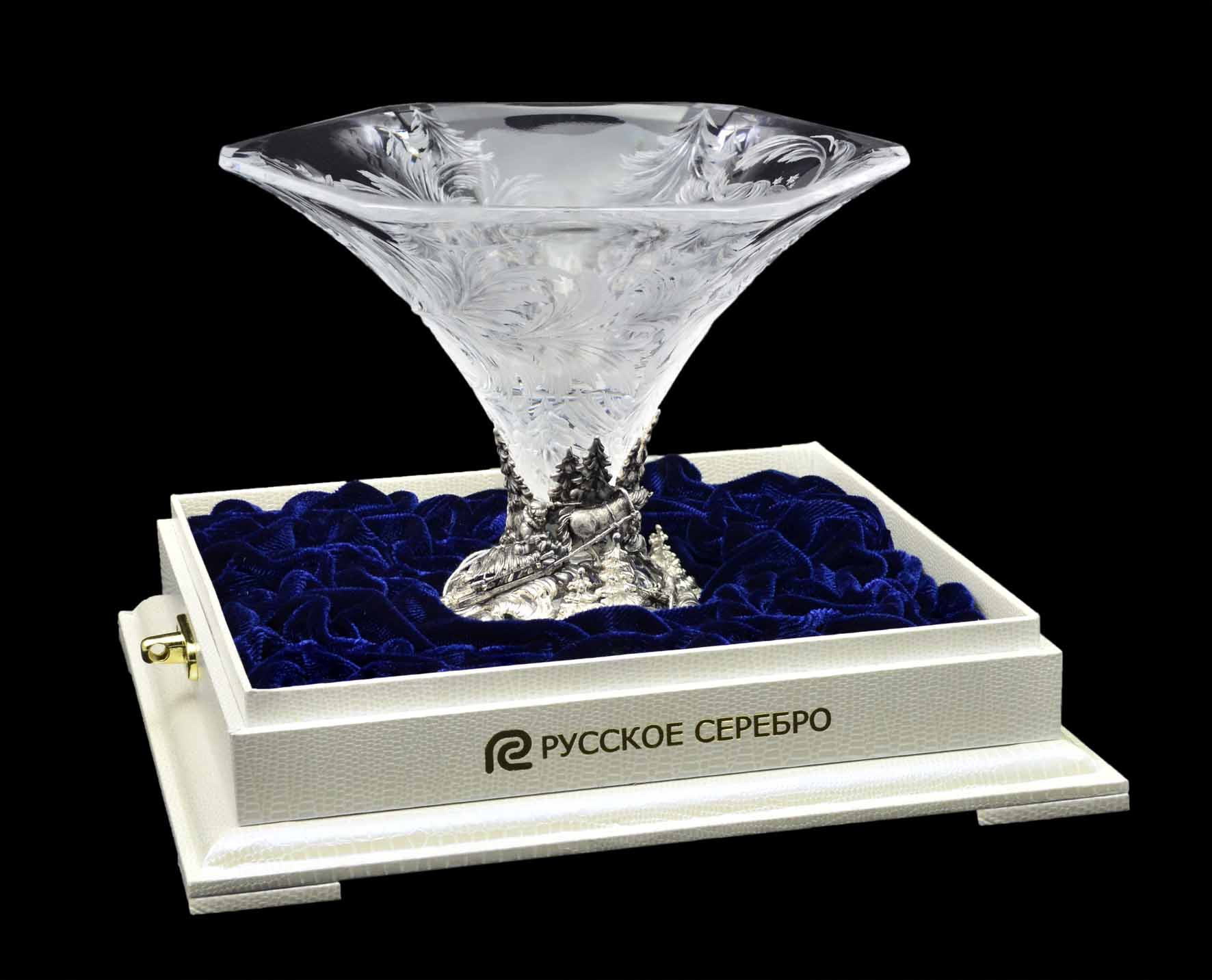 Изделие выполнено с применением ручной гравировки по хрусталю, а также с применением технологий: литьё, оксидирование, гравирование.