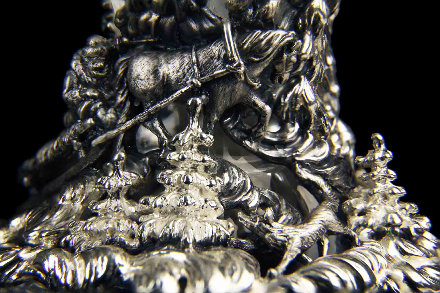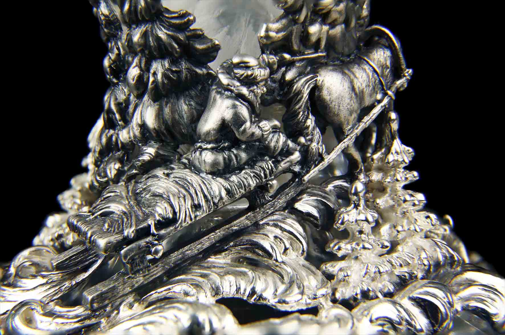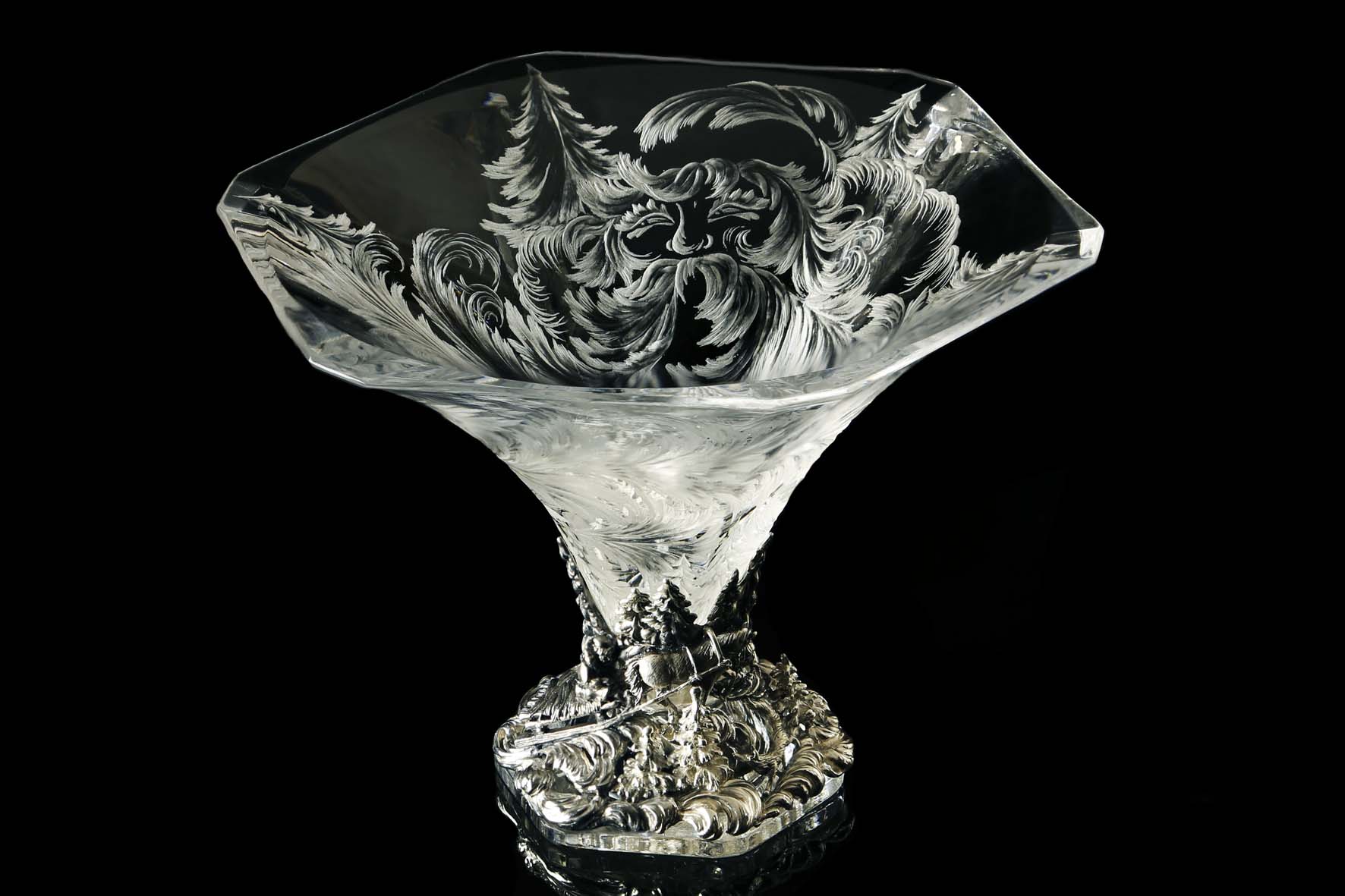 Изделие выполнено с применением ручной гравировки по хрусталю, а также с применением технологий: литьё, оксидирование, гравирование.