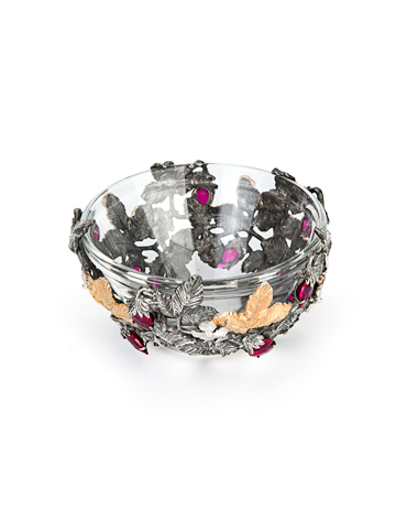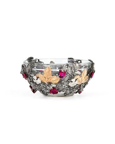 Креманка «Земляника» выполнена из термостойкого стекла украшенного серебром.