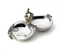 Серебряная менажница "Яблочный спас" с позолотой с чернением. Высота - 14 см., длина - 13 см., ширина - 24 см. Артикул: BIS0001