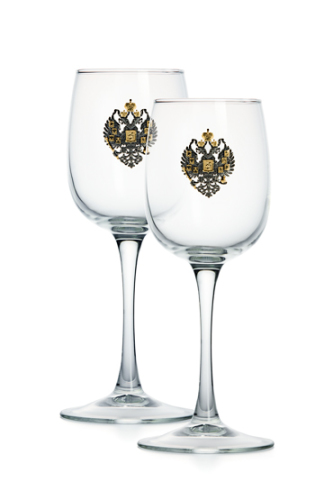 Каждый бокал украшен гербом царской России ручной работы.