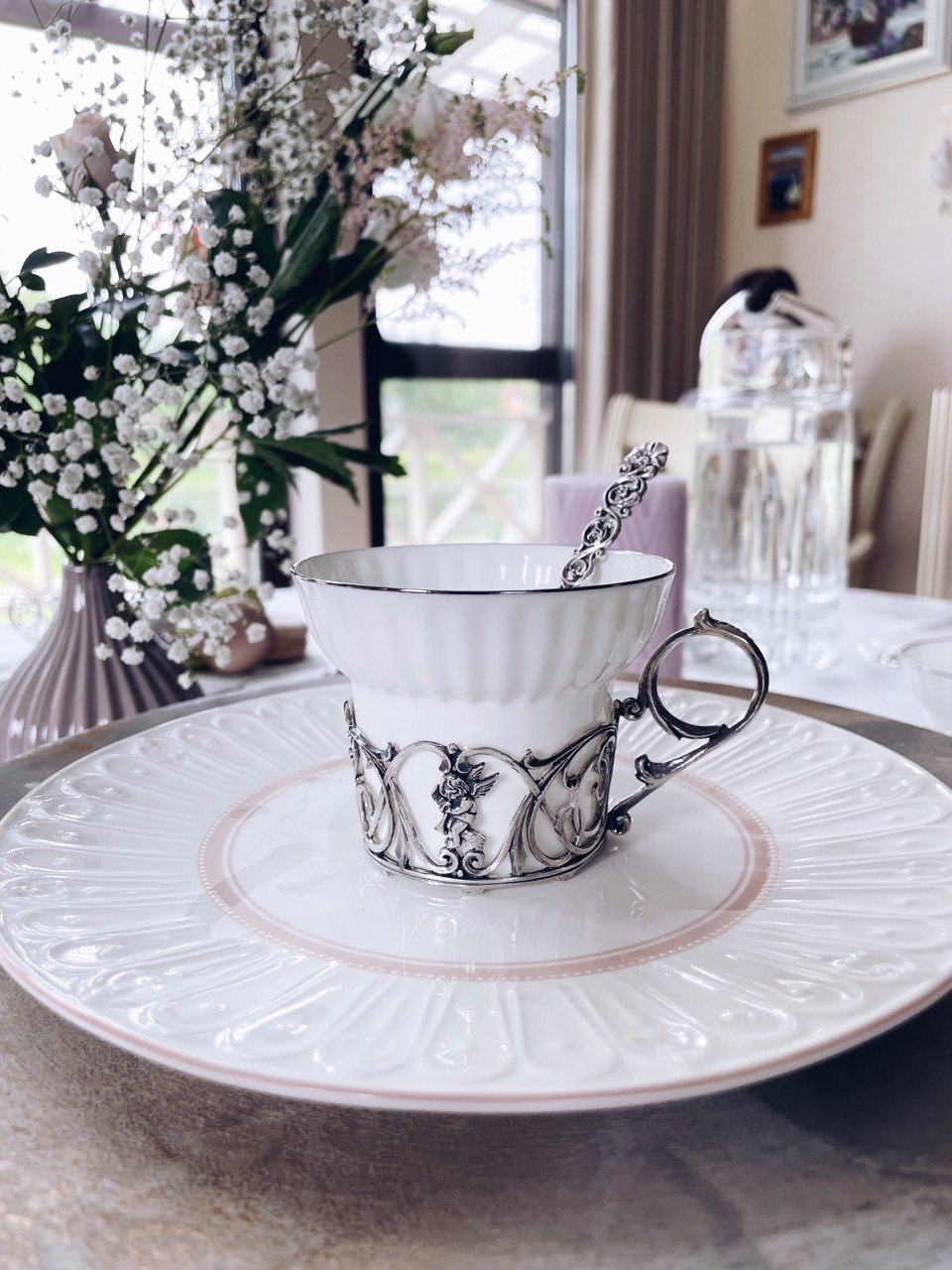Чашка чайная из серебра "Ангел". Высота: 6,5 см. Ширина: 8 см. Артикул: KSR0019