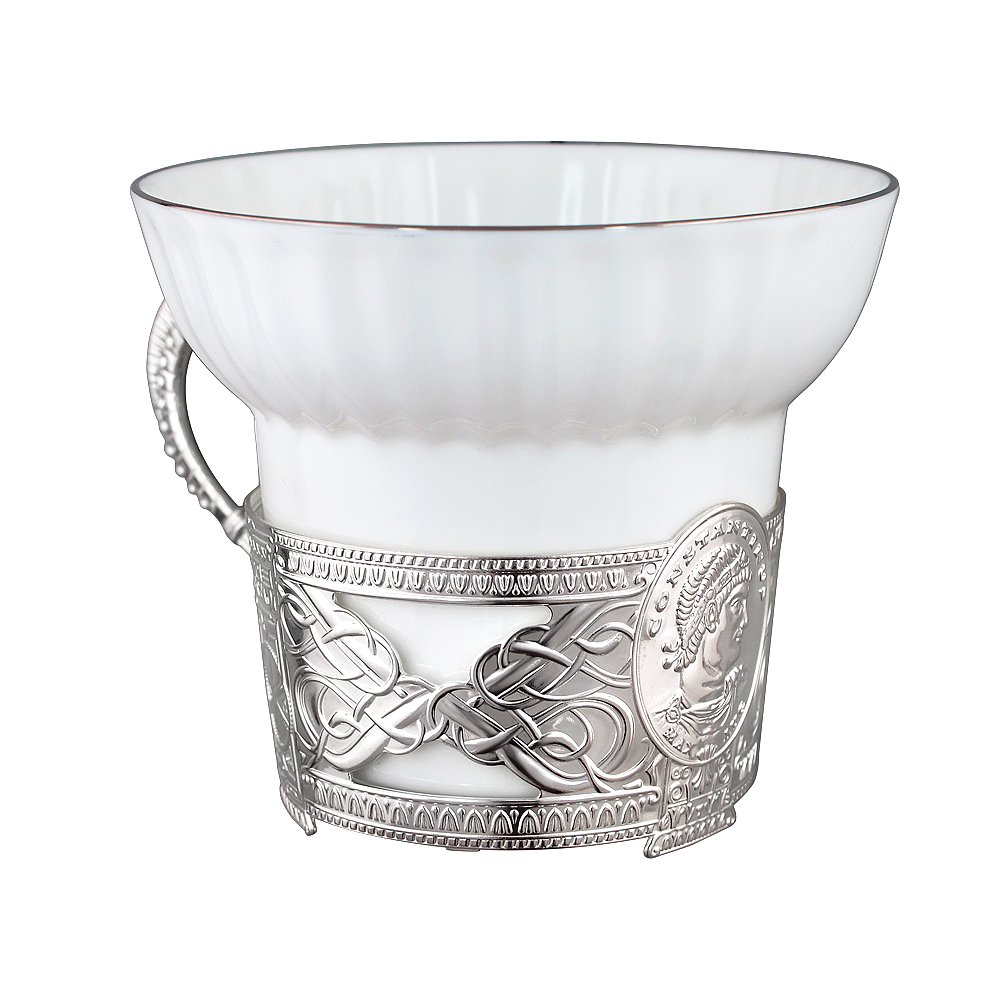 Чашка чайная с серебром "Константин Великий". Высота: 7 см. Ширина: 8 см. Артикул: KSR0016