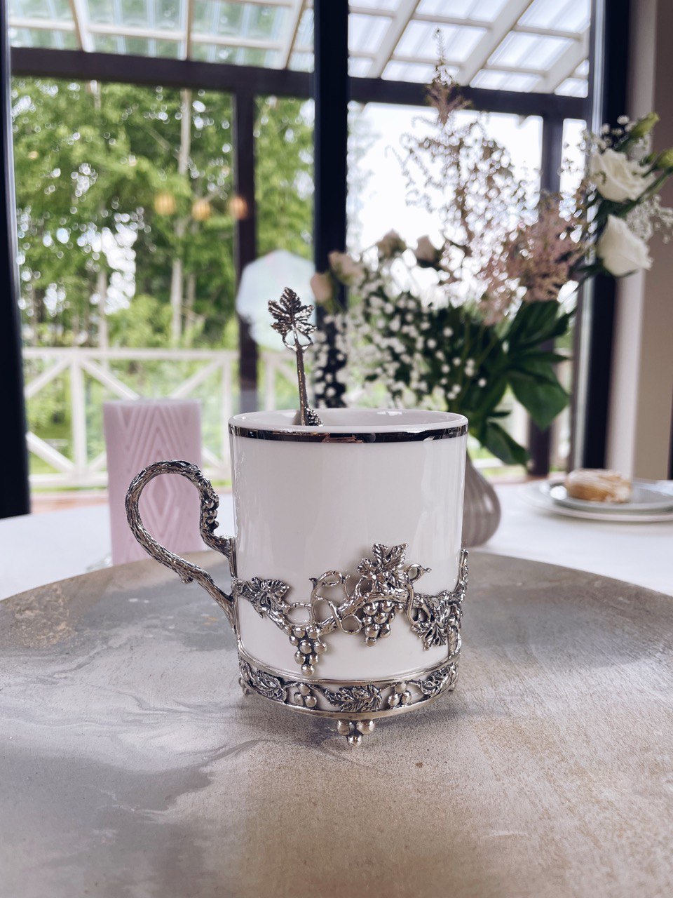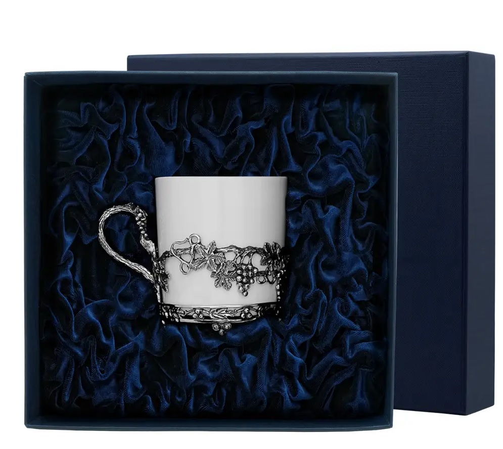 Чашка чайная из серебра "Виноград". Высота: 7 см. Ширина: 7 см. Артикул: KSR0023