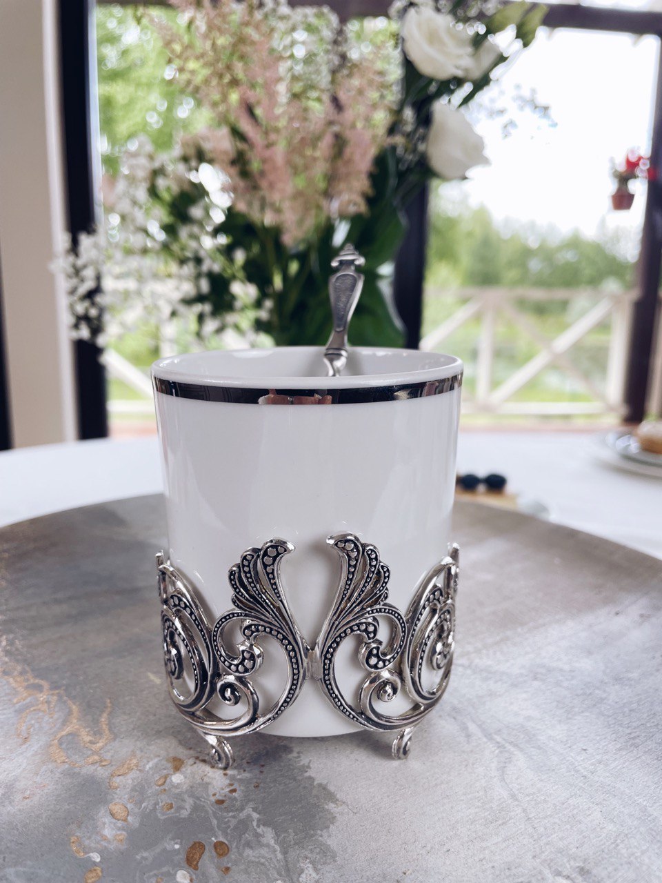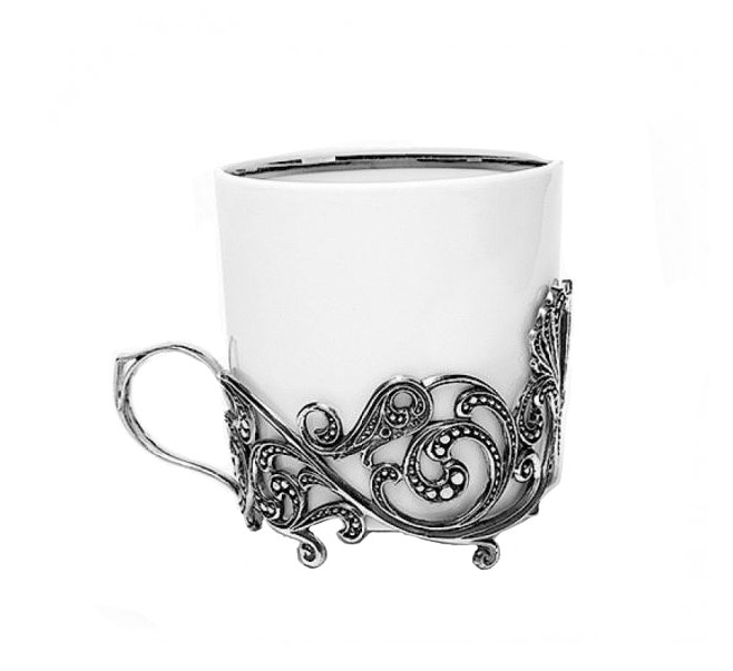 Чашка чайная с серебром "Витая". Высота: 7 см. Ширина: 7 см. Артикул: KSR0024