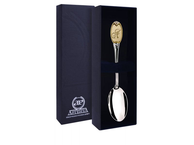Чайная ложка из серебра с логотипом «А» с позолотой