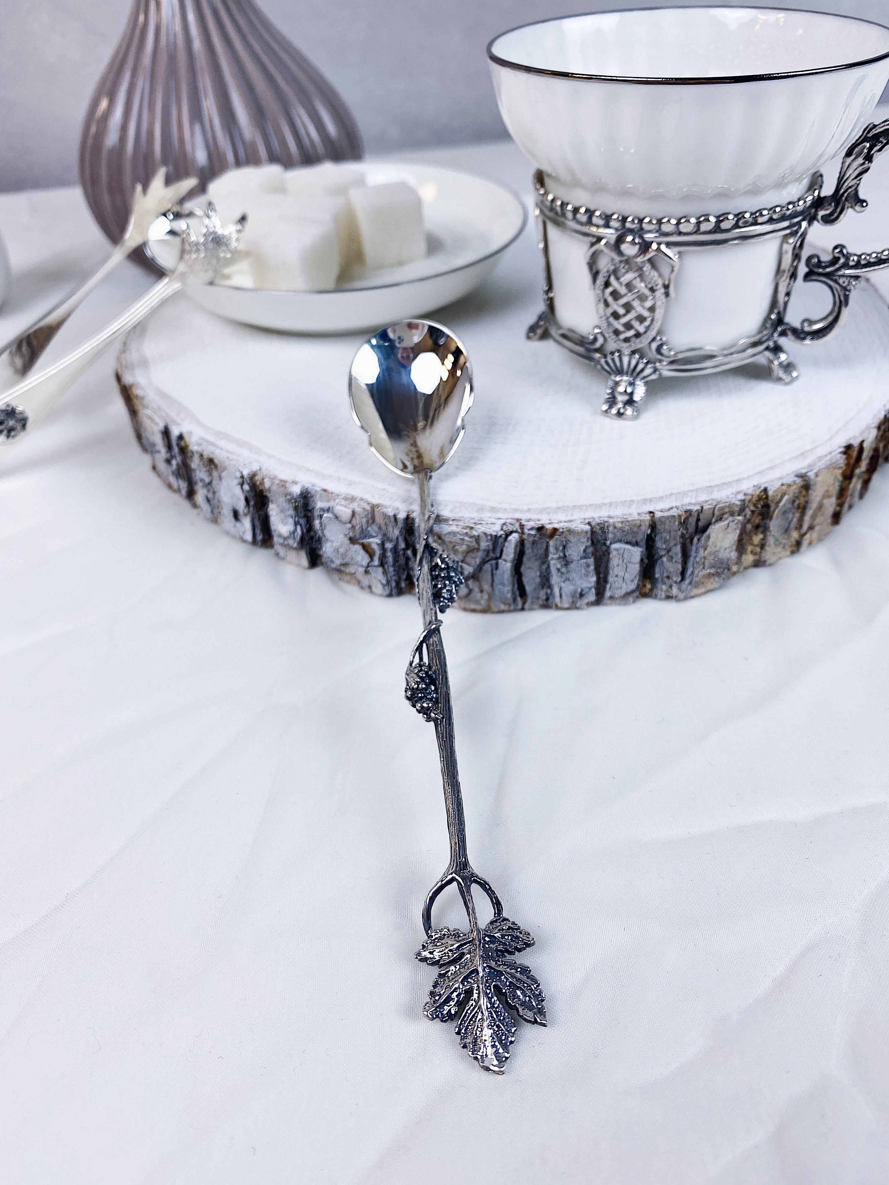 Чайная ложка из серебра «Виноград» с чернением