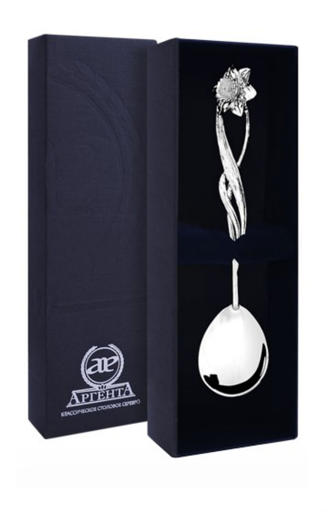 Чайная ложка из серебра "Нарцисс". Длина - 13 см., ширина - 2.5 см. Артикул: CLS0034