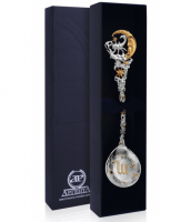 Чайная ложка из серебра "Зодиак-Скорпион" с позолотой. Длина – 13.2 см., ширина - 3 см. Артикул: CLS0056