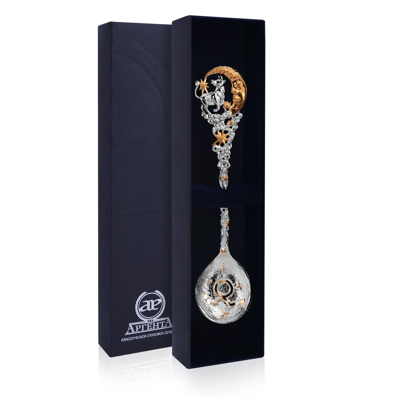 Ложка серебряная «Зодиак Телец» с позолотой в футляре