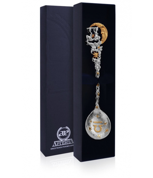 Чайная ложка из серебра "Зодиак-Весы" с позолотой. Артикул: CLS0049